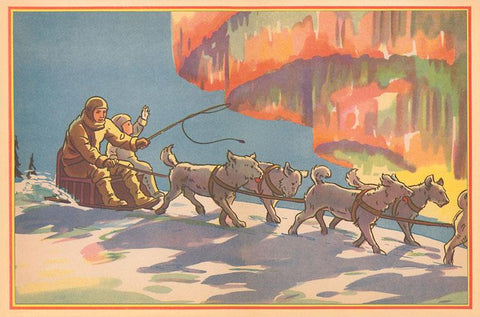 KF-836 Sled Dogs and Aurora Borealis - Vintage Image