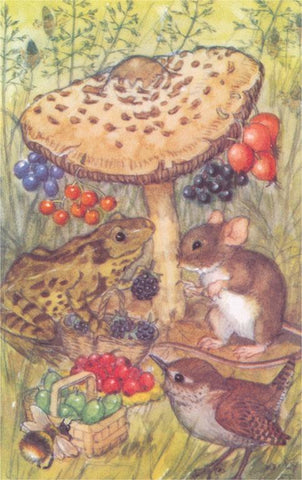 KF-936 Toad and Mouse under Mushroom - Vintage Image