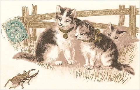 KC-04 Cats Watching Beetle - Vintage Image