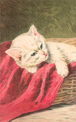 KC-05 White Kitten with Red Cloth - Vintage Image