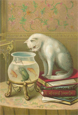 KC-38 Cat Watching Frog and Fish - Vintage Image