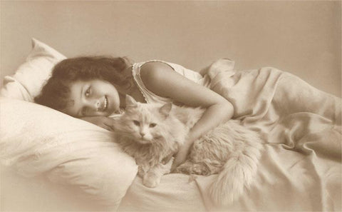 KC-46 Girl in Bed with Cat - Vintage Image