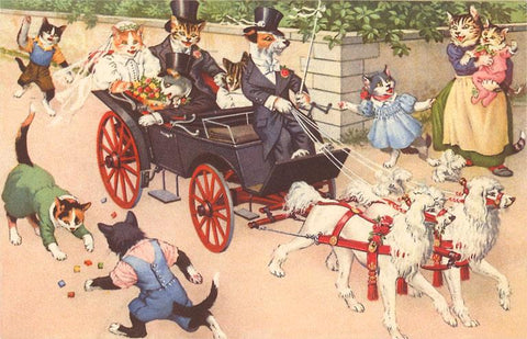 KC-59 Newlywed Crazy Cats in Carriage - Vintage Image