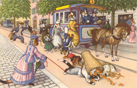 KC-64 Horse-Drawn Streetcar Incident with Crazy Cats - Vintage Image