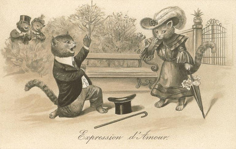 KC-78 Victorian Cat Proposing, Expression d'Amour - Vintage Image