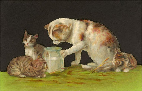 KC-82 Cat and Kittens Looking at Milk - Vintage Image