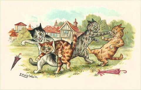 KC-103 Cats in Playground Fight - Vintage Image