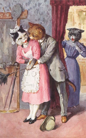 KC-105 Tom Cat Embracing Servant Cat - Vintage Image