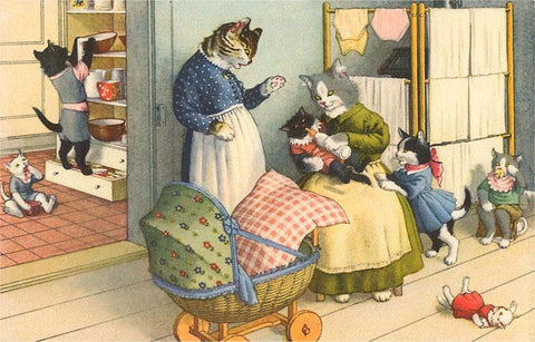 KC-148 Crazy Cats in Domestic Porch Scene - Vintage Image