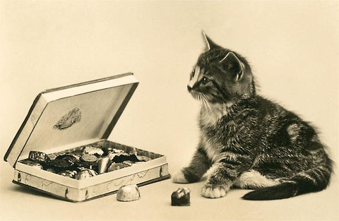 KC-163 Kitten with Box of Chocolates - Vintage Image