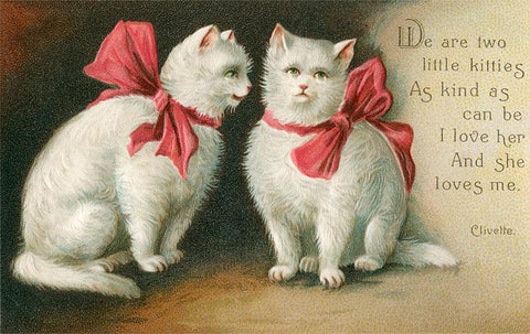 KC-170 Vintage White Cats with Bows - Vintage Image