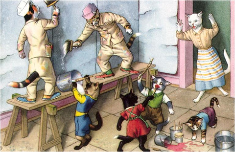 KC-246 Crazy Cats and Wallpaper - Vintage Image