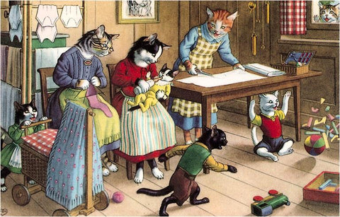 KC-247 Crazy Cat Domestic Scene - Vintage Image