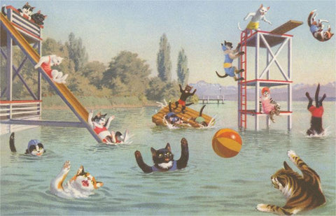 KC-277 Crazy Cats Swimming in Lake - Vintage Image