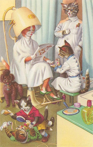 KC-291 Crazy Cats at the Beauty Parlor - Vintage Image