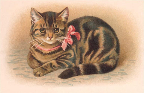 KC-336 Tabby Cat with Pink Bow - Vintage Image