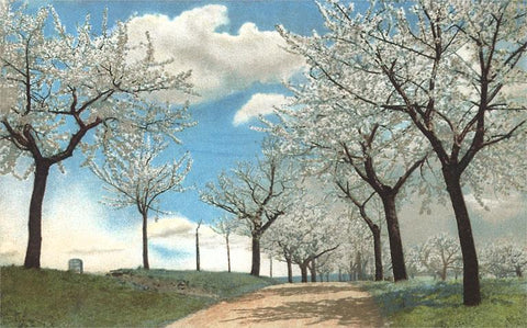 LD-10 Cherry Blossoms on Country Lane - Vintage Image