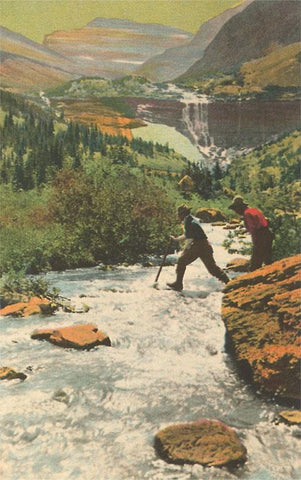 LD-59 Hikers Crossing Stream - Vintage Image