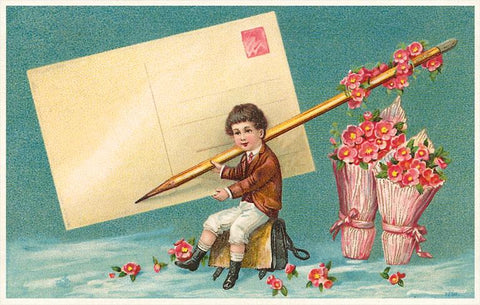 LT-68 Boy Addressing Giant Postcard - Vintage Image