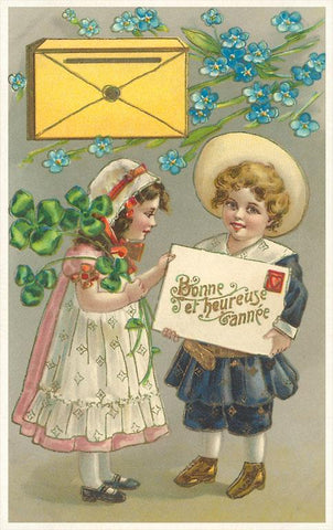 LT-72 Bonne et Heureuse Annee, Victorian Children with Letter - Vintage Image