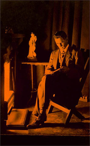 LT-83 Man Reading by Firelight - Vintage Image