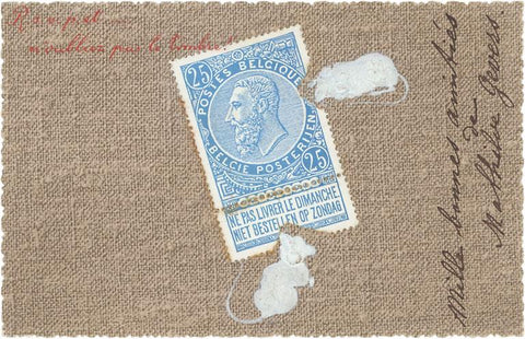 LT-103 Belgian Weave with Mice Eating Stamp - Vintage Image
