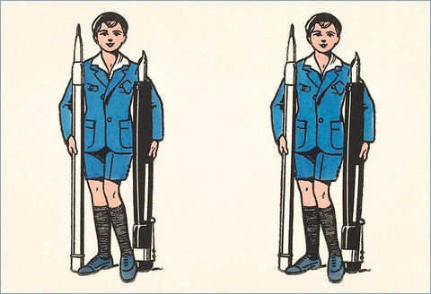 LT-233 Boys with Large Pens and Pencils - Vintage Image