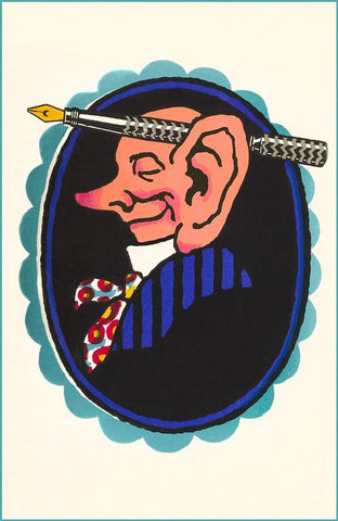 LT-266 Big-Eared Man with Fountain Pen - Vintage Image