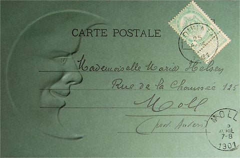 LT-296 French Post Card with Embossed Moon - Vintage Image