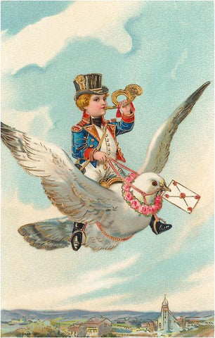 LT-327 Boy Riding on Dove with Letter - Vintage Image