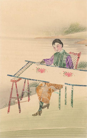LT-348 Woman Painting Scroll - Vintage Image