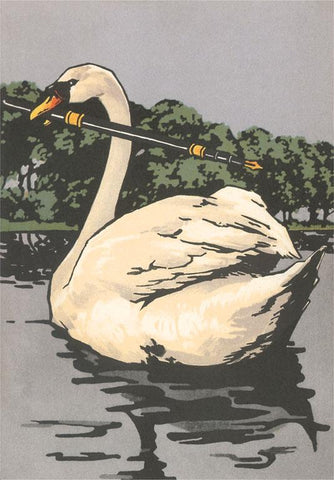 LT-370 Swan with Fountain Pen - Vintage Image