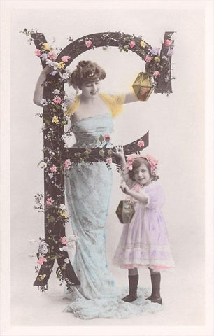 LT-435 Mother and Child on Capital F - Vintage Image