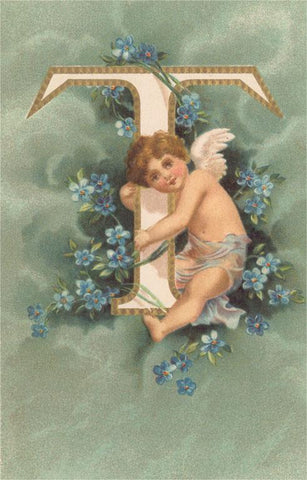 LT-466 Cherub Hugging Letter T - Vintage Image