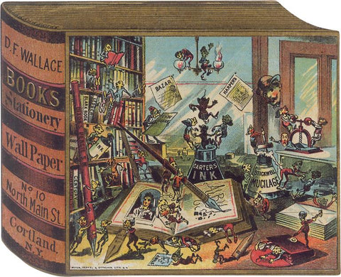 LT-473 Cluttered Book Store with Elves - Vintage Image
