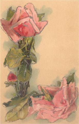 LT-485 Letter L in Pink Roses with Glitter - Vintage Image