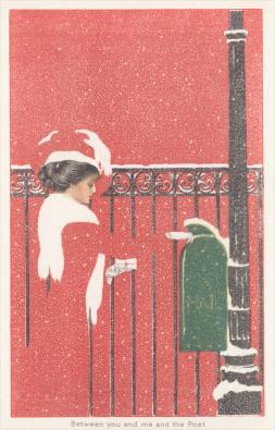 LT-500 Woman in Red Mailing Letter - Vintage Image
