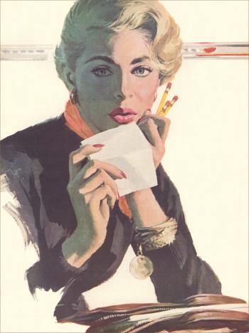 LT-503 Blonde Holding Paper and Pencils - Vintage Image