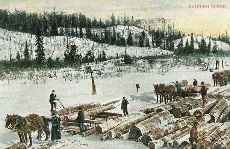 LG-09 Winter Logging Scene - Vintage Image