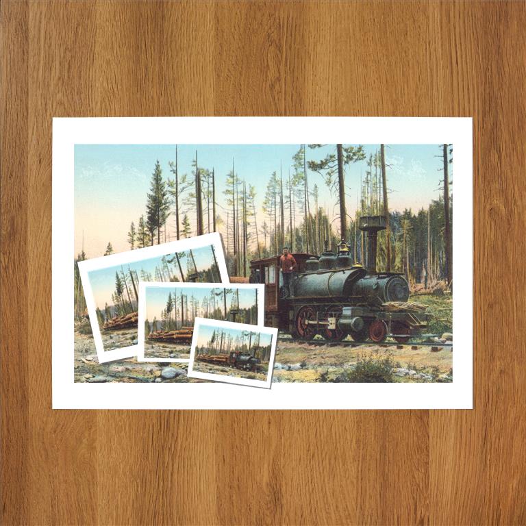 Explore the rugged history of our Logging collection. Perfect for wholesale, this collection includes vintage postcards, greeting cards, desktop calendars, art prints, stickers, and magnets, featuring images of logging scenes and equipment, ideal for retailers looking to offer industrial and historical items.