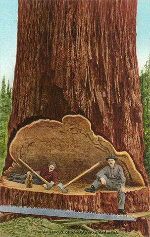 LG-07 Undercut of Redwood with Two Lumberjacks - Vintage Image