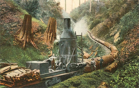 LG-16 Steam Lumber Mill on Tracks - Vintage Image