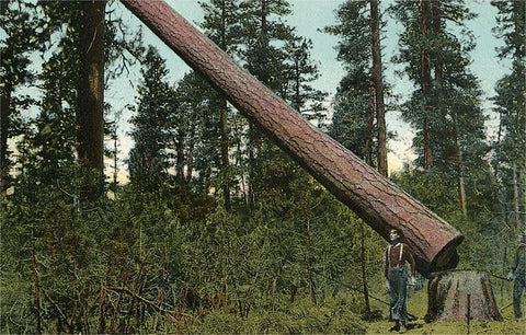 LG-32 Lumberjack and Semi-Felled Tree - Vintage Image