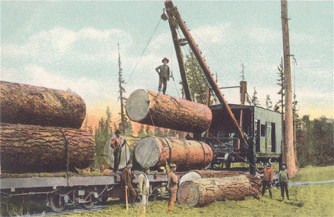 LG-74 Loading Logs onto Railcar - Vintage Image
