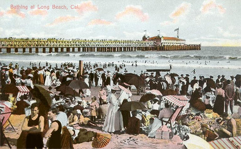 LB-40 Pier and Vintage Bathers, Long Beach, California - Vintage Image