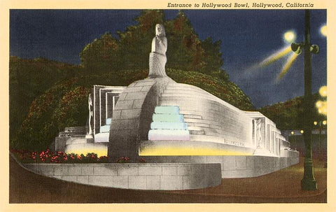LA-122 Hollywood Bowl at Night, California - Vintage Image