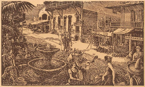 LA-276 Woodcut of Olvera Street - Vintage Image