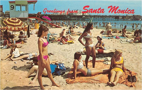 LA-444 Greetings from Santa Monica, California, Beach Scene - Vintage Image