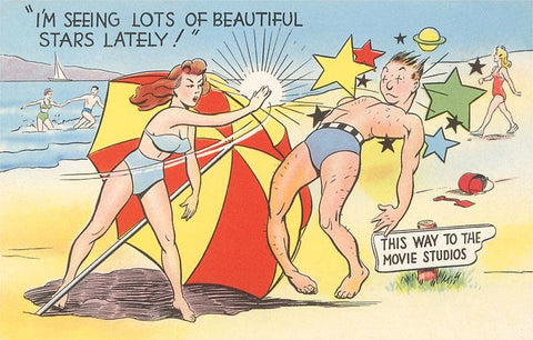 LA-491 Beach Cartoon, Seeing Stars - Vintage Image
