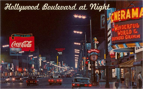 LA-497 Hollywood Boulevard at Night - Vintage Image
